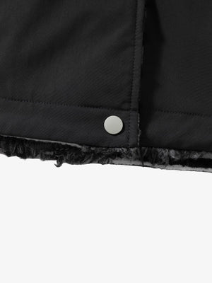 •    Design Elements: Faux fur collar and cuffs, button closures, patch pockets