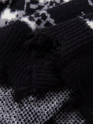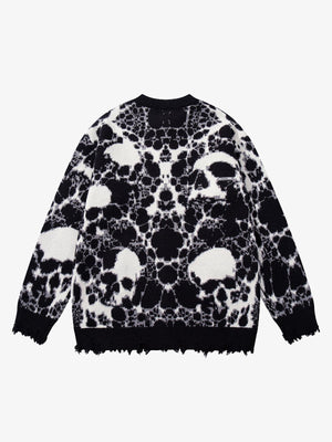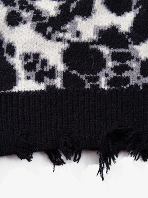 • Design Elements: Intricate skull patterns, distressed hem details