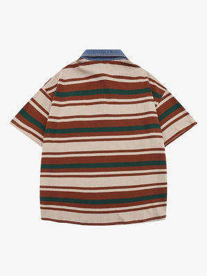 • Detail Features: Short Sleeves, Contrast Collar, Button Placket