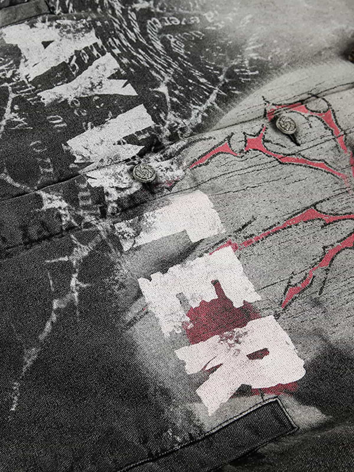 • Design Elements: Bold graphic print with spider motif, distressed texture, prominent lettering
