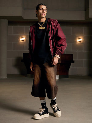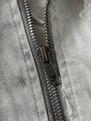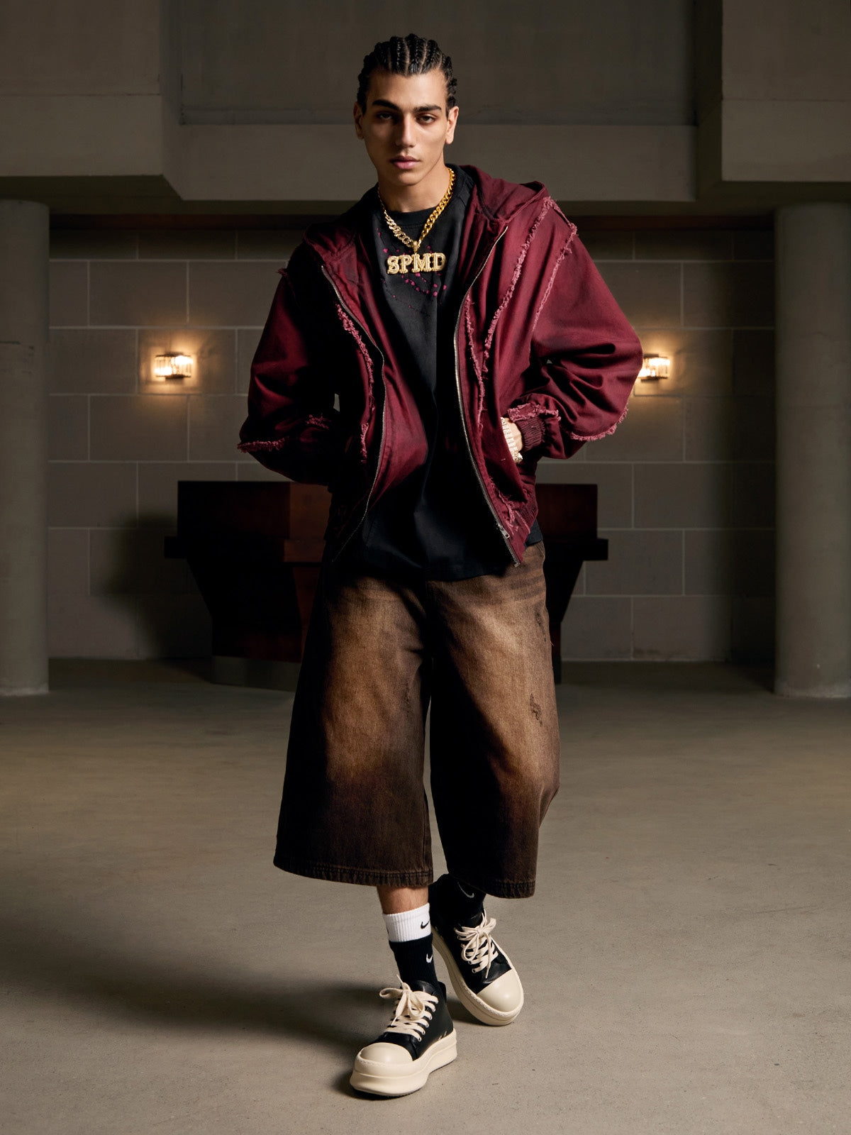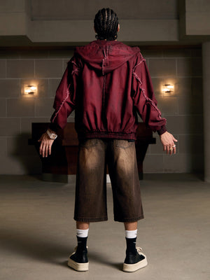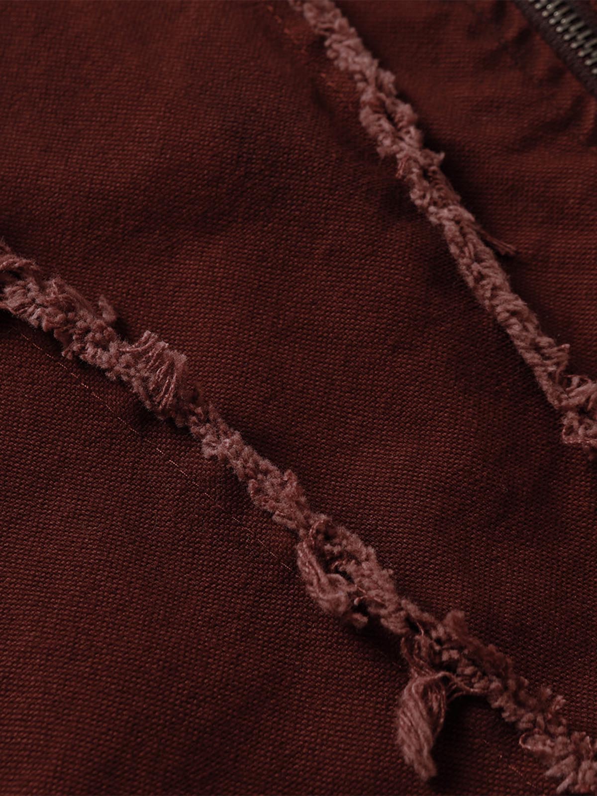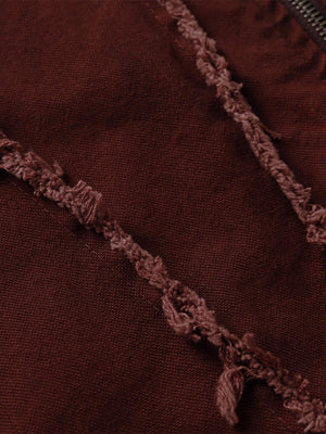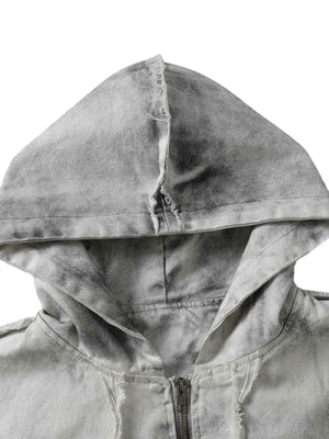 • Design Elements: Frayed Edges, Front Zipper Closure, Hooded Neckline